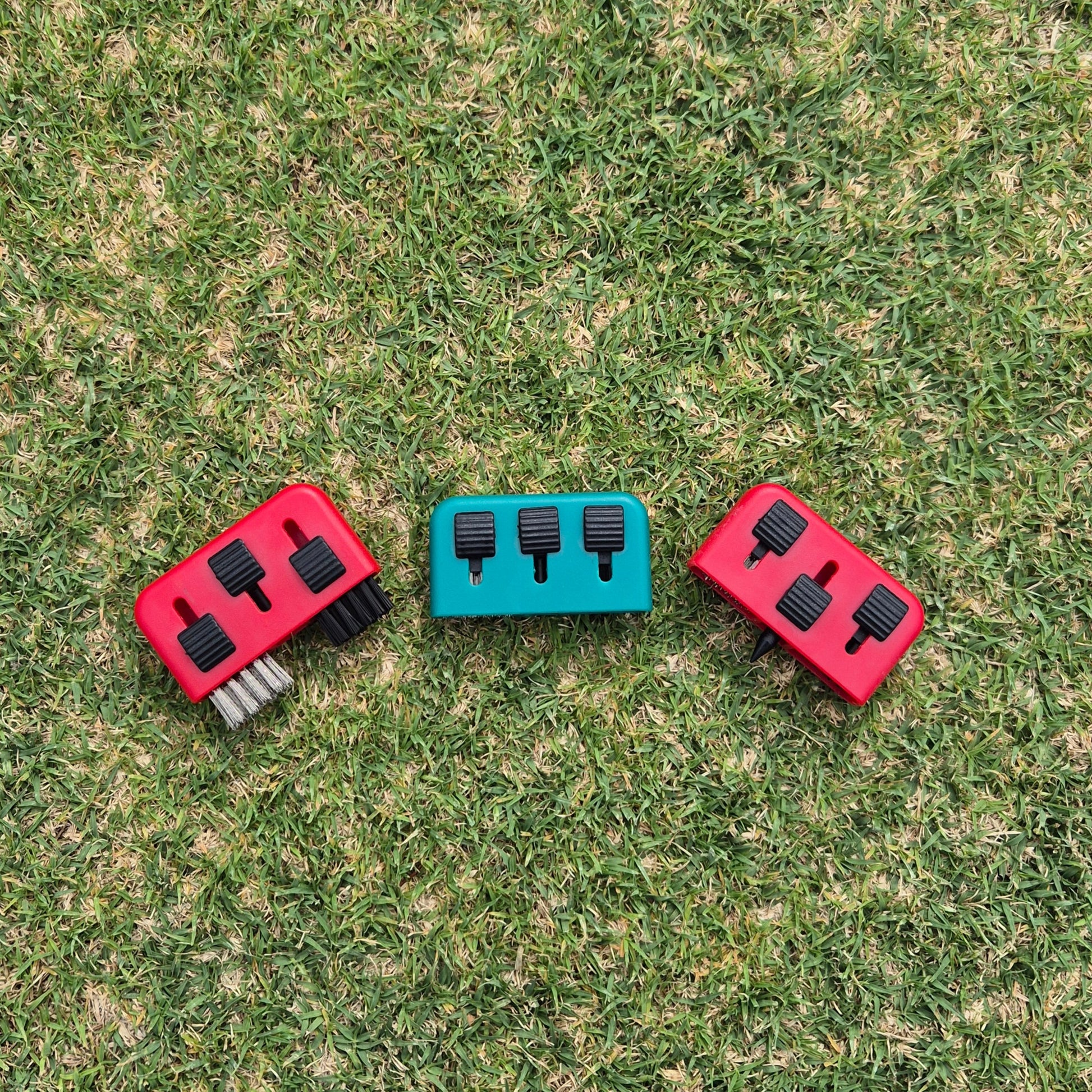 Achieve a spotless golf game with our Three-Way Club Cleaning Brush! Expertly designed to thoroughly clean club heads, grooves, and even spikes, this brush will improve your performance. Elevate your game with this essential tool.